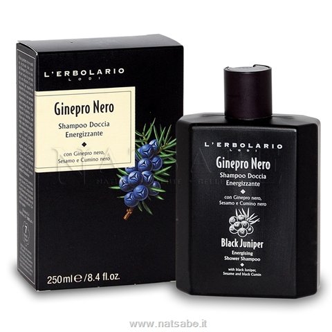 Estratti di Ginepro nero e Cumino nero, acqua distillata di Ginepro nero, idrolizzato di Sesamo nero, aminoacidi dell’Orzo tensioattivati, Carbone vegetale.