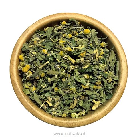 Camomilla volgare, verbena, liquirizia radice, melissa foglie, finocchio frutti.